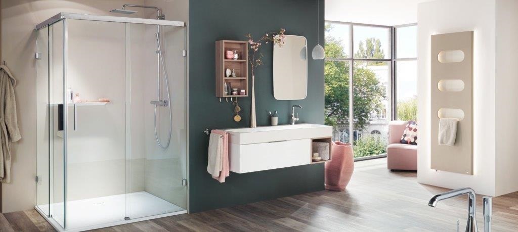 Für Duschen mit Schiebetüren bietet unser Lieferant Pauli + Sohn ein neues Modell unter dem Namen „Everyspace“ an, hier sind die Laufrollen im Profil verdeckt und mit einem Dämpfungssystem ausgestattet, gleiten die Türen sanft in die Endposition.
