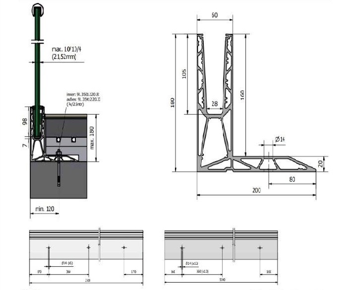 Mit einer Profilhöhe von 300 mm ist das Profil TL 3121 dank seines Diagonalsteges zur Lastenunterstützung besonders für die seitliche Treppenmontage geeignet. Optimal kann das TL 3121 ebenfalls dickere Estrich- oder Isolierschichten sowie Treppenstufen komplett