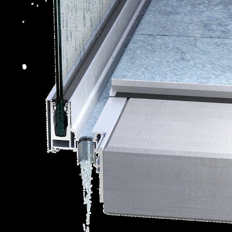 BALARDO aqua control vereint das stufenlos verstellbare Ganzglasgeländer BALARDO hybrid mit der neuentwickelten, revisionierbaren Balkonentwässerung in einem Systemprofil.
